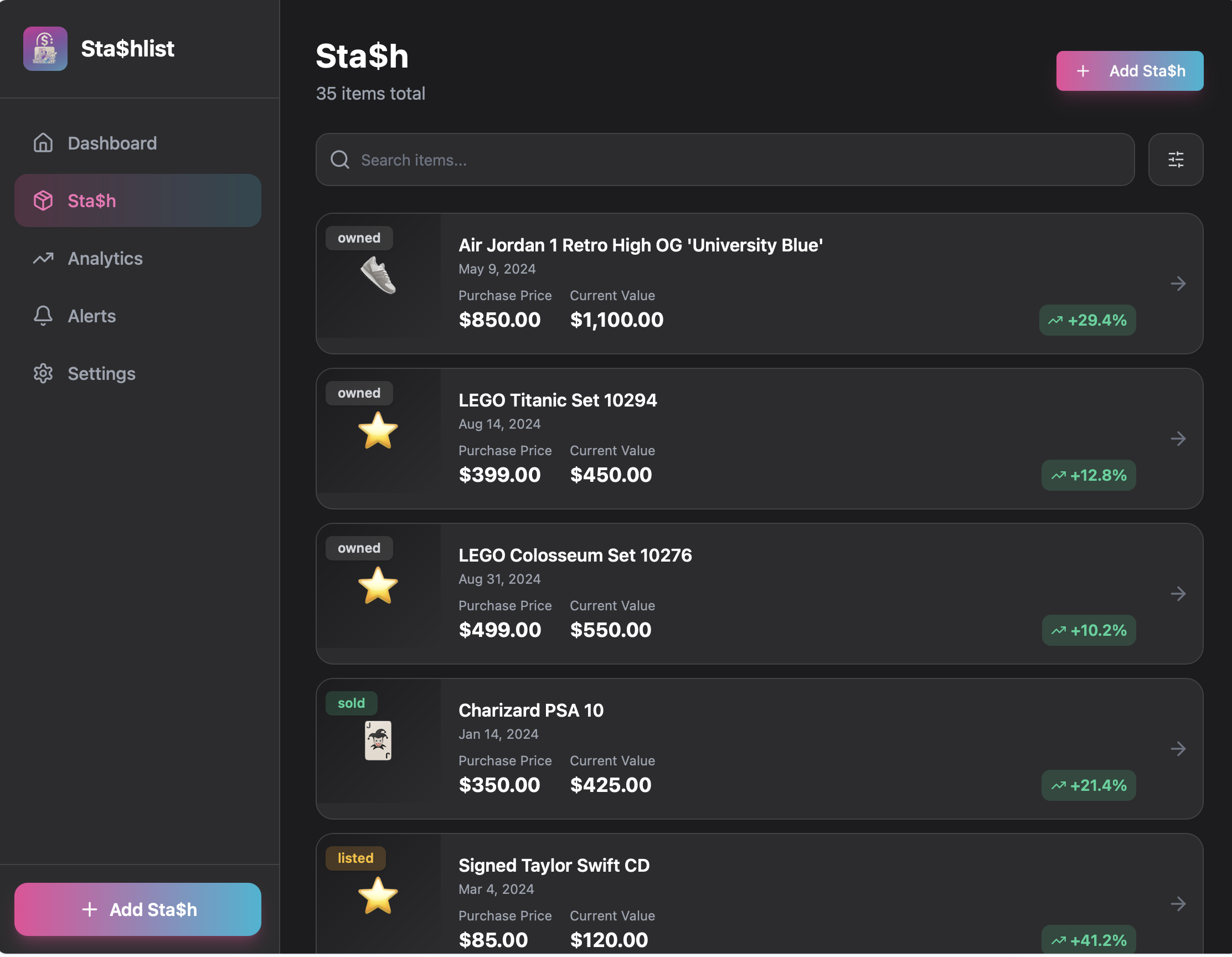 Stop guessing your portfolio value. Stashlist transforms your inventory into a high-yield asset tracker.